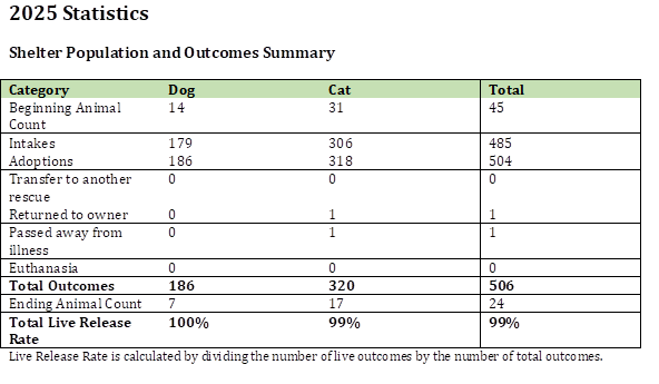 Our 2025 Animal Statistics
