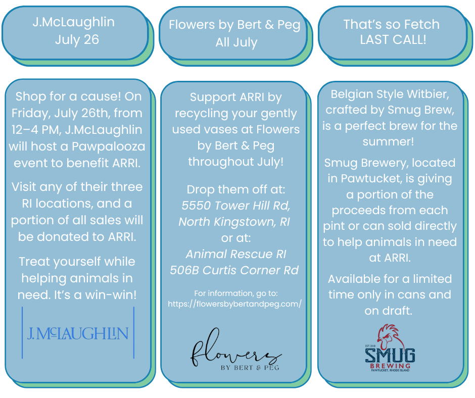 From July 3rd through July 5th, visit Belmont Market and donate at checkout to help provide shelter, care, and second chances for animals in need. Every dollar makes a difference. Be sure to look for our flyers in-store, and thank you for supporting ARRI! |